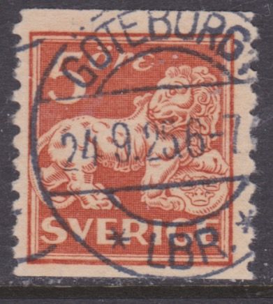 F142A 5 öre Stående lejon, Göteborg 24.9.25 vacker-prakt |