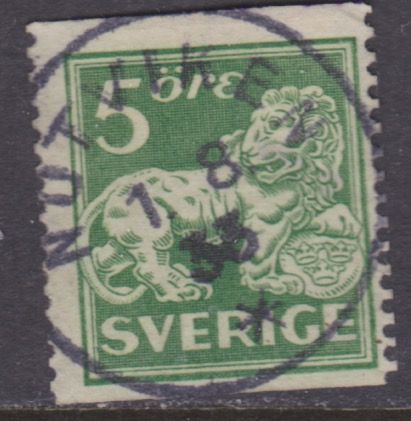 F143E 5 öre Stående lejon utan VM, Notviken 1,8,33 vacker-prakt |