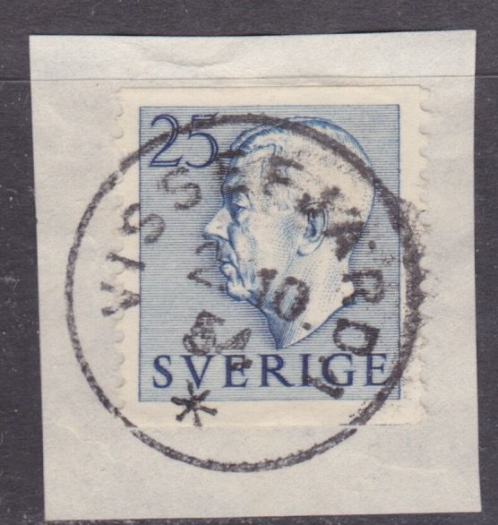 F406AA 25 öre Gustaf VI Adolf Vissefjärda 2.10.54 vacker på klipp |