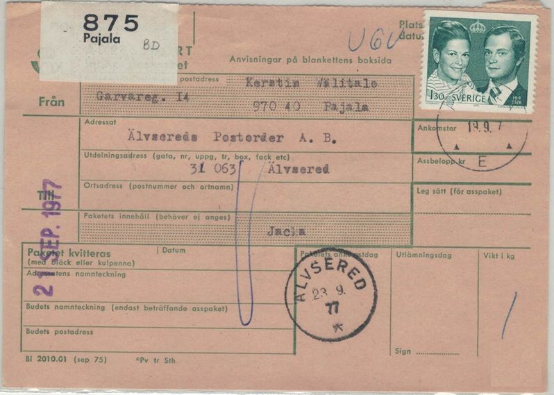Pajala NSt 60 E på paketavi 19.9.77 SVÅR |