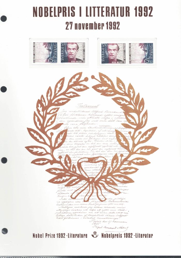 MB35 Nobelpris i Litteratur 1992 Postfriskt i Plastficka |