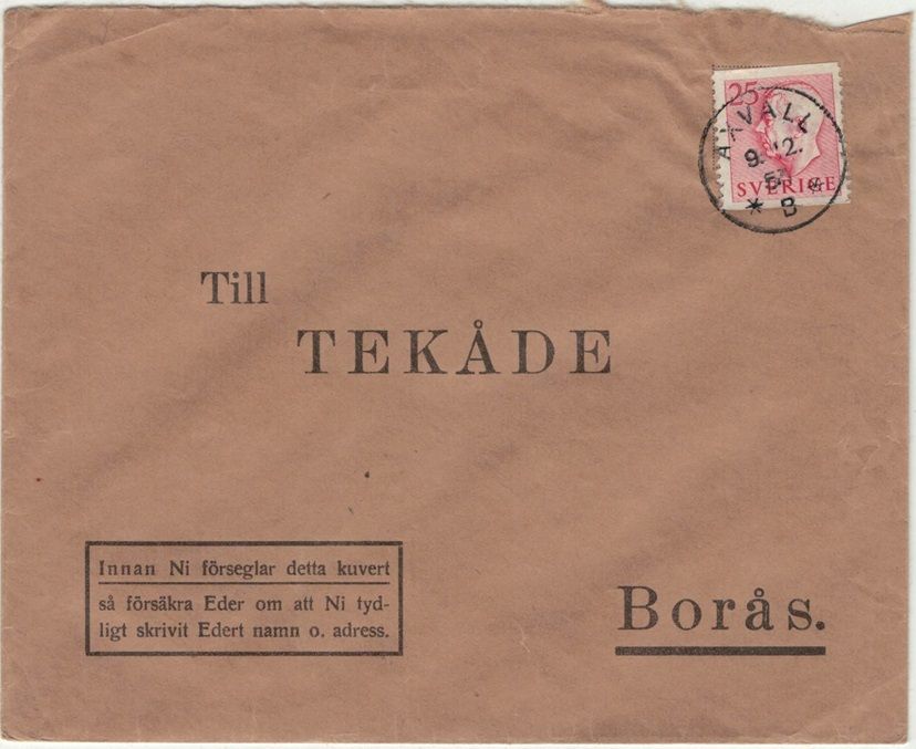 Axvall NSt 59cB på brev 9.12.53 nära PRAKT |