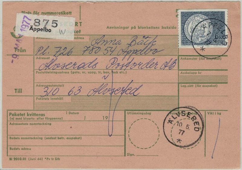Äppelbo NSt 59b på paketavi 7.5.77 |