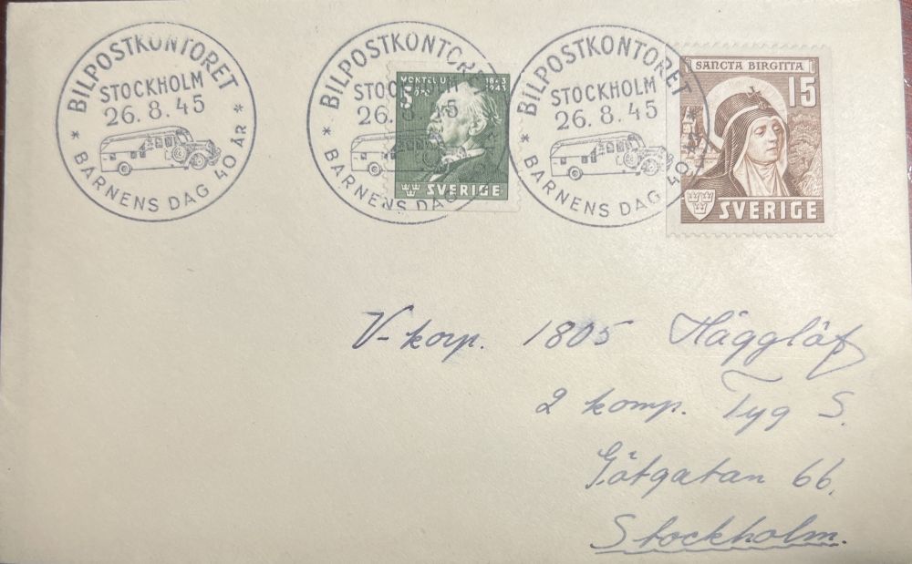 Bilpostkontoret 26.8.45 Barnens Dag |