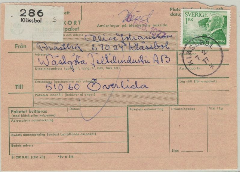 Klässbol NSt 59b på paketavi 7.2.77 |