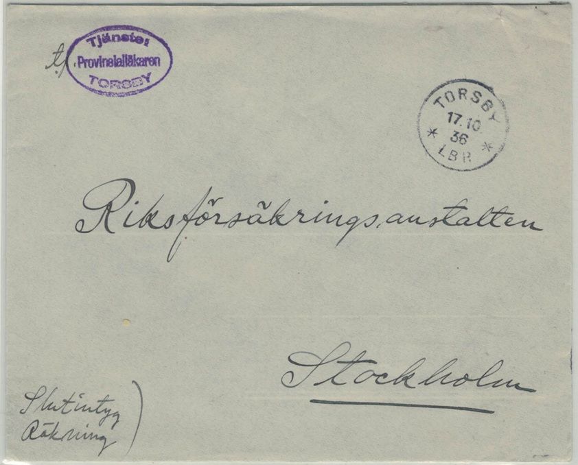 Torsby NSt 59cLBR på tjänste-brev (Provinsialläkaren) 17.10.36 |