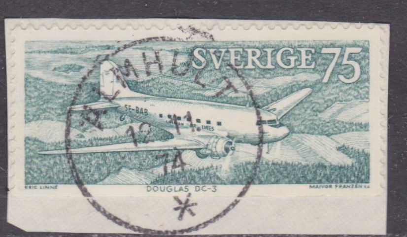 F781B 75 öre Postflyg, Älmhult 12.11.74 vacker-prakt på klipp |