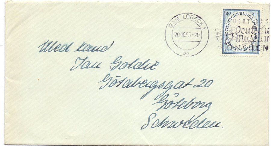 Tyskland Bundesrepubliken Mi 210 på brev stpl 20.10.55 - Pris i Michel 30 euro |