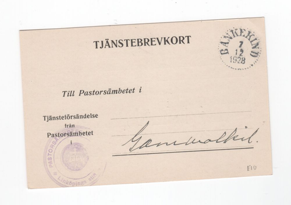 Tjänstebrevkort Bankekind 1928-12-07 E-län |