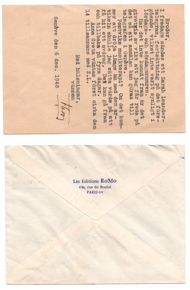 Lösenförsändelser (2 st) stpl Malmö 1948 resp 1958 Från Frankrike och Schweiz