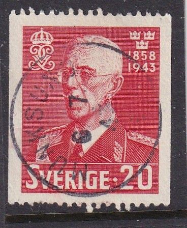 20 öre Gustaf V 85 år. Stämplat Munksund 6/7 -43 |