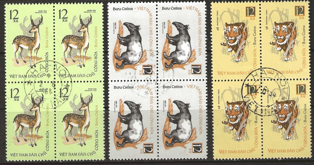 Vietnam, M 319-21 3 stämplade 4-block Djur |