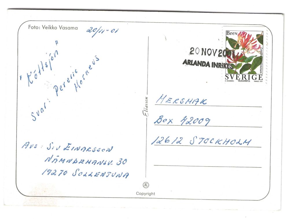Rakstämpel 20 nov 2001 Arlanda inrikes på kort. |
