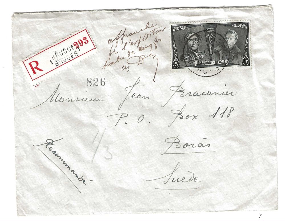 REK-brev Belgien-Sverige, M202 5 Fr 11..5.1926 |
