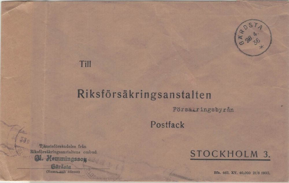 Gärdsta NSt 59b på tjänste-brev 28.4.36 |