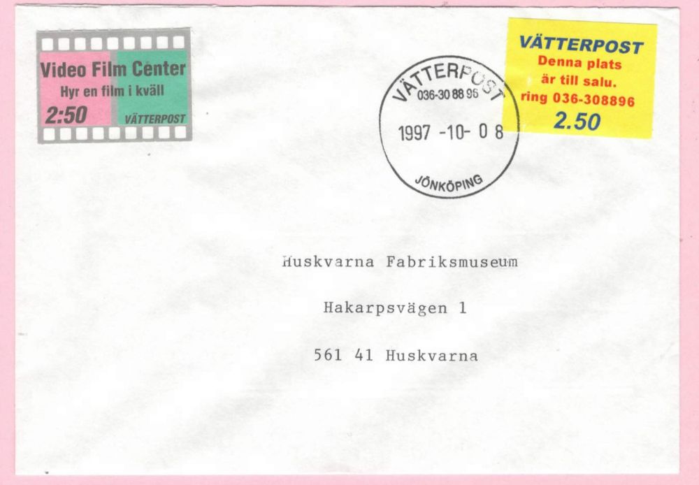 Vätterpost nr 1 , 3 brev 1997 lokalpost frimärken B1569 |