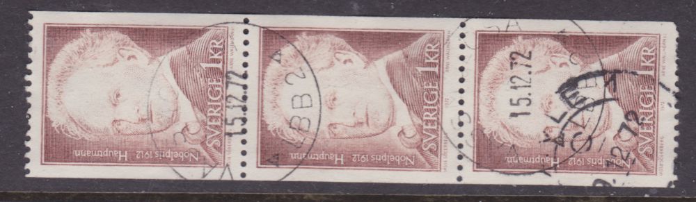 F806 1 kr Nobelpristagare 1 3-strip, Vassmolösa 15.12.72 *LBB2* |