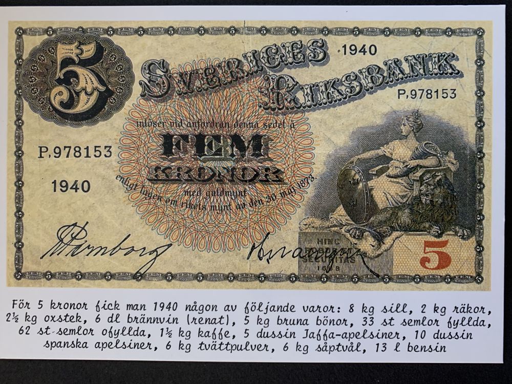 Gamla Svenska sedlar på vykort |