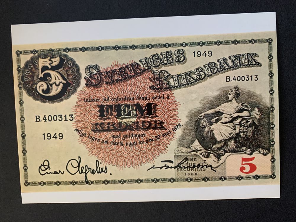 Gamla Svenska sedlar på vykort |