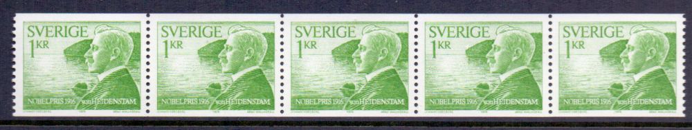 F987 Nobelpristagare 1916 1 kr, 5-strip ** |