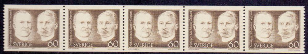 F803 Nobelpristagare 1912 60 öre, 5-strip ** |