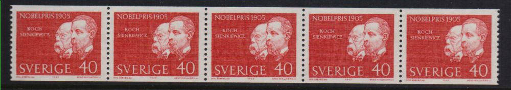 F571 Nobelpristagare 1905 40 öre, 5-strip ** |