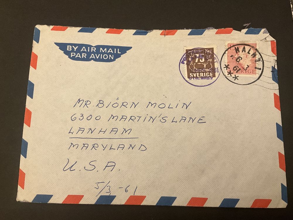 Flygburen till USA frankerat stämplat MALMÖ |