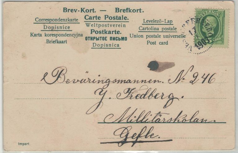 Vesterfernebo NSt 14 på brevkort 17.7.1903 (vy Reiarfossen vid Ose) |
