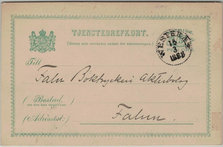 Westerås NSt 14 på tjänstebrevkort 15.3.1888 |