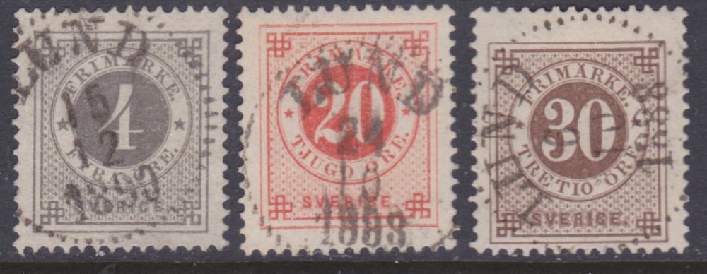 | Stämplar: Östergötland | Frim Sverige: Oscar II F39, 45, 52-74 |