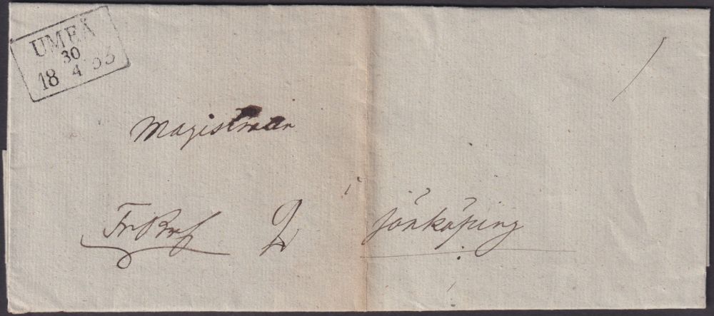 Förfilateli Fyrkantstpl Umeå typ 2 1853.04.30 till Jönköping Postal 600 SEK |