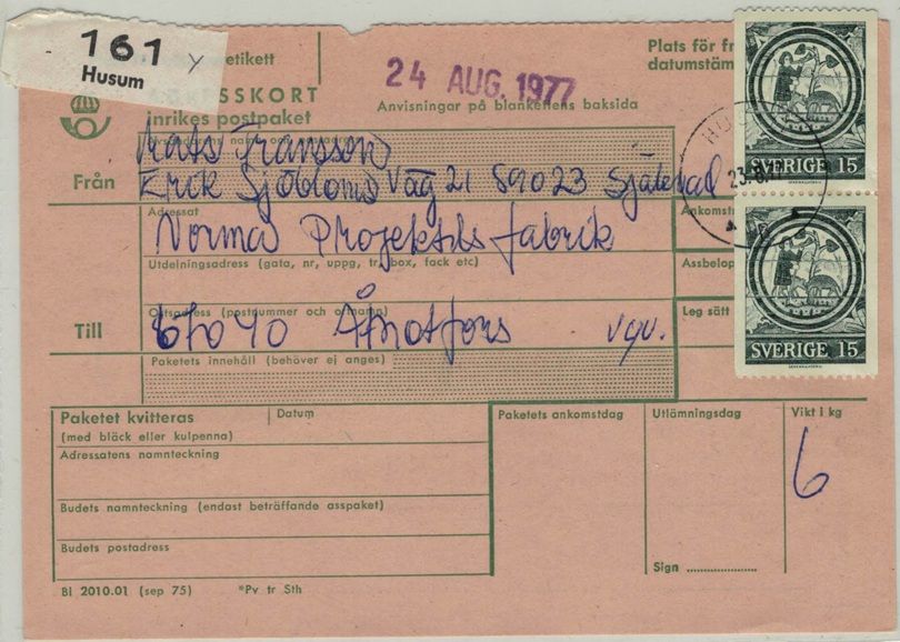 Husum NSt 60 B på paketavi 23.6.77 noterad R4 i katalog av Forsberg |