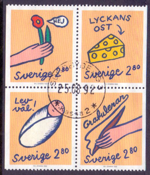 F1752-55 Hälsningsfrimärken, HBL, Sundbyberg 3 25.08.92 |