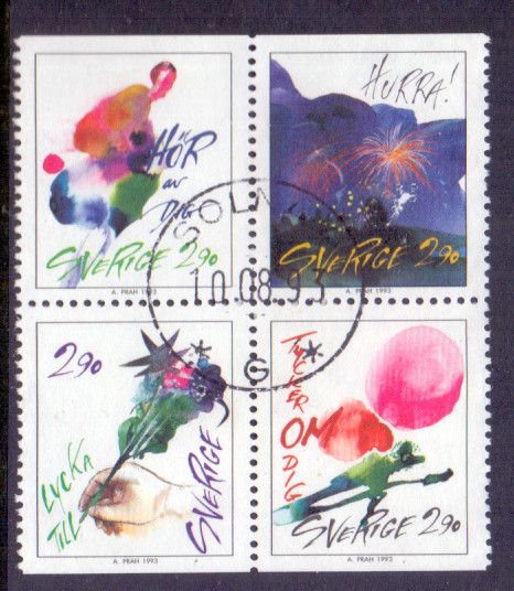 F1802-05 Hälsningsfrimärken II, HBL, Solna 4 10.08.93 |
