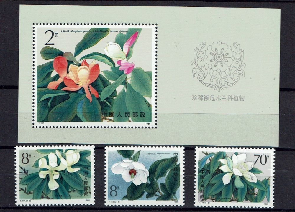 KINA Mi 2086-88 + block 2089 postfr ex BLOMMOR