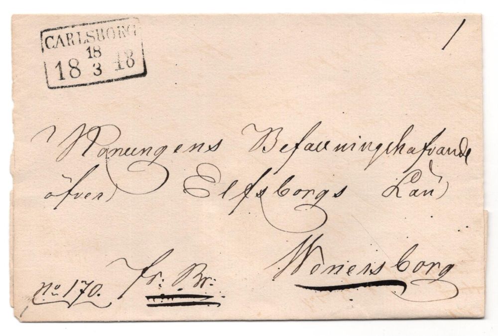 Fribrev till Wenersborg med fyrkantstpl CARLSBORG 1848-03-18