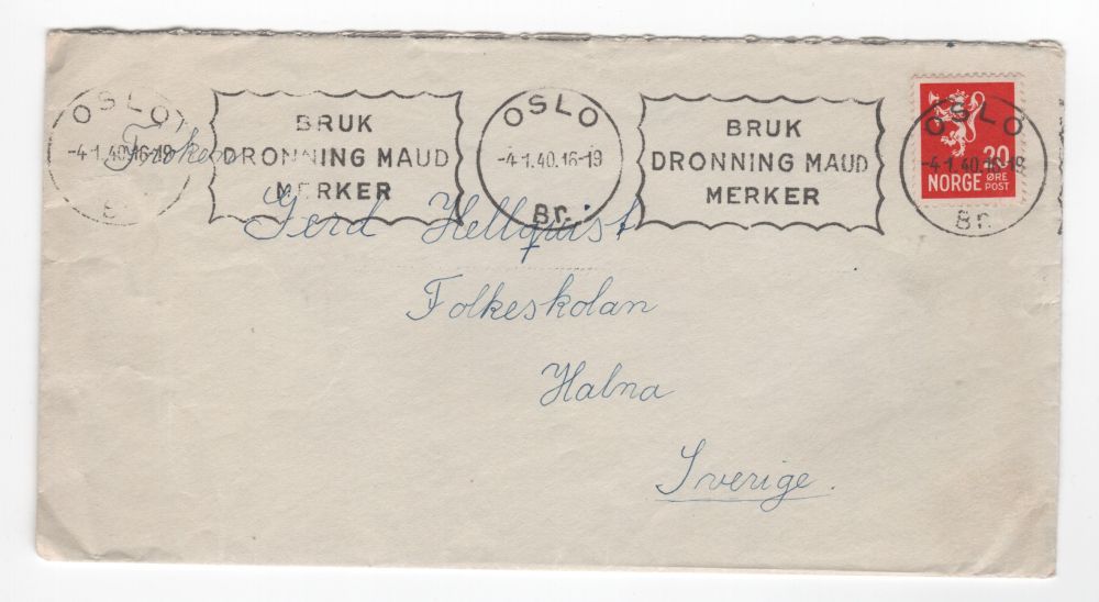 Brev OSLO 1940-01-04 Maskinstämpel DRONNING MAUD |