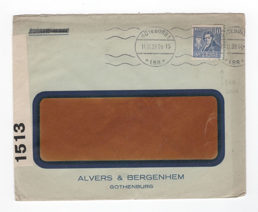 F322 Göteborg 1939-11-11 Bruksbrev Censur O-län |