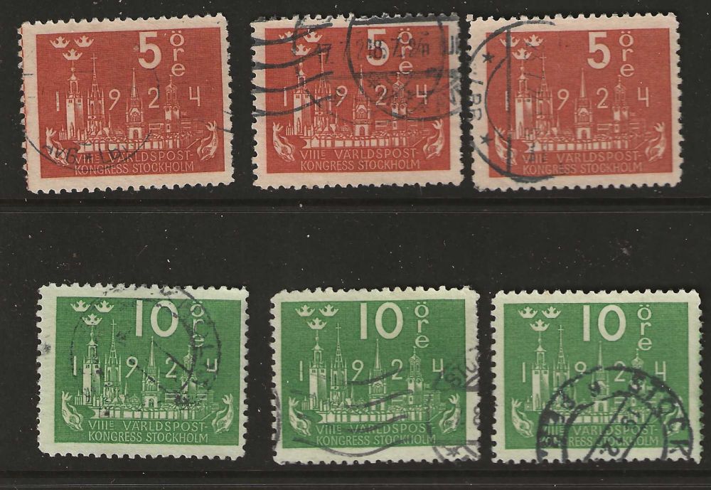 F196-7 5 0ch 10 öre Kongressen 6 st stämplade märken |