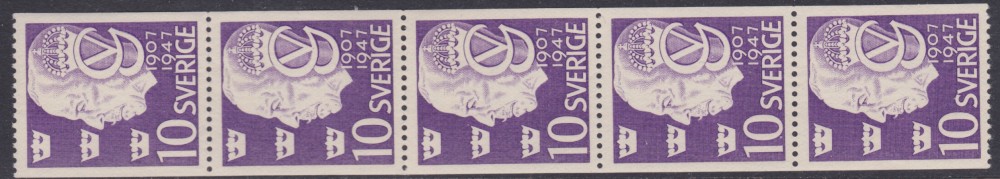 F376A Gustaf V:s Regeringsjub. 10 öre ** 5-strip |