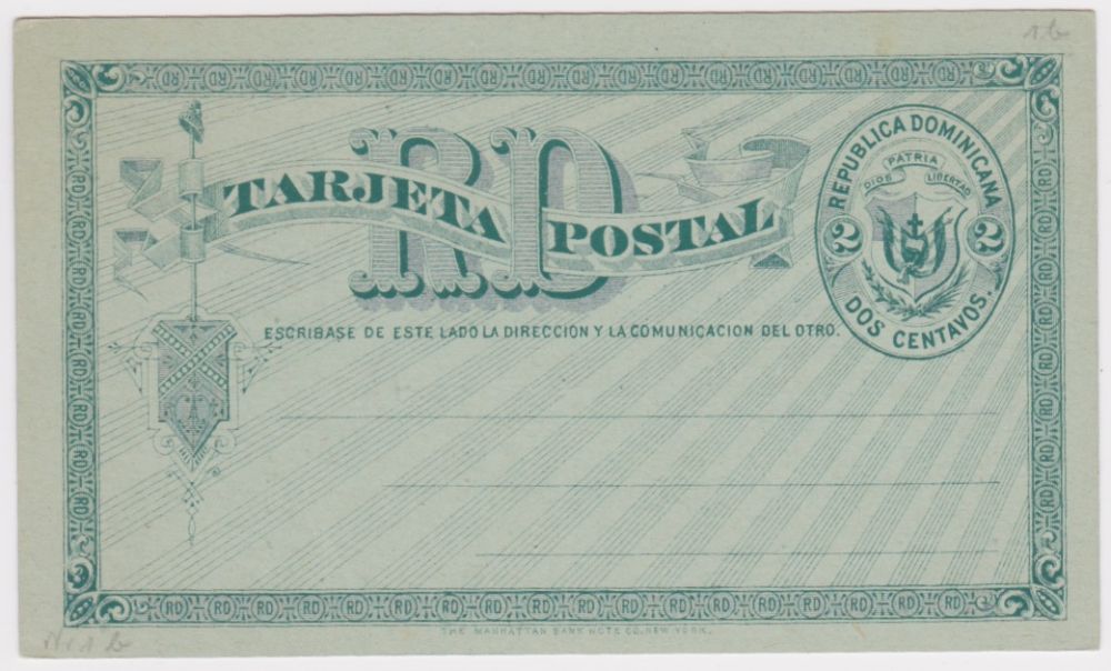 Dominicana Brevkort 2 centavos obegagnat, ljusgrön t papper |