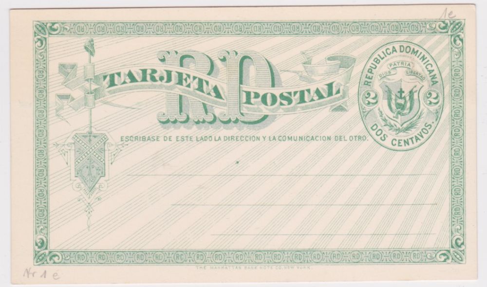 Dominicana Brevkort 2 centavos obegagnat, vit papper |