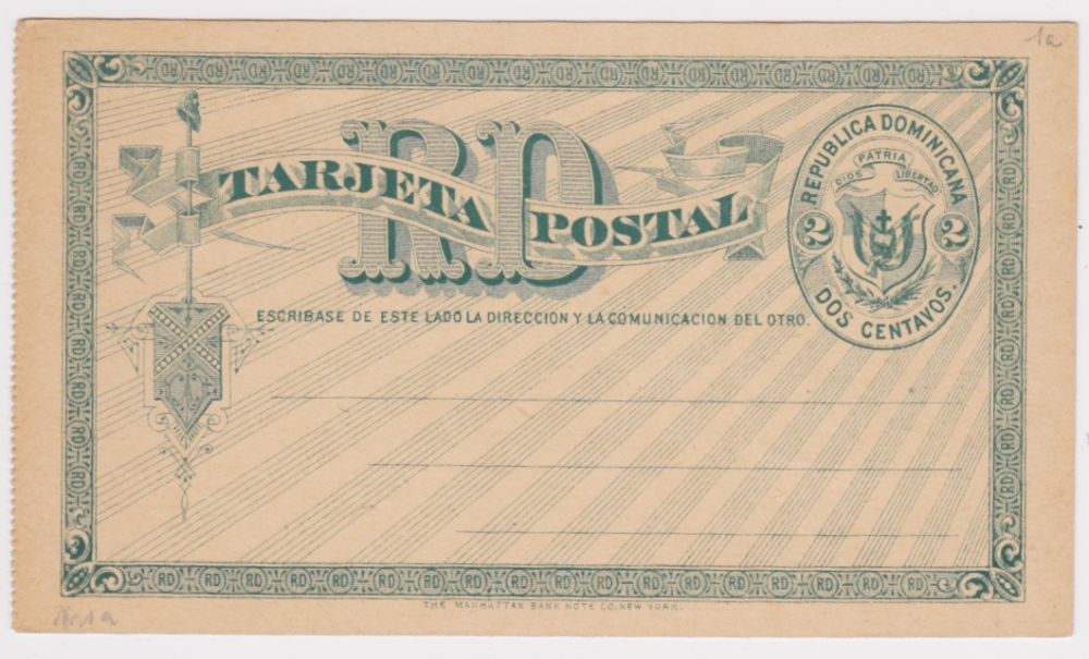 Dominicana Brevkort 2 centavos,grön |