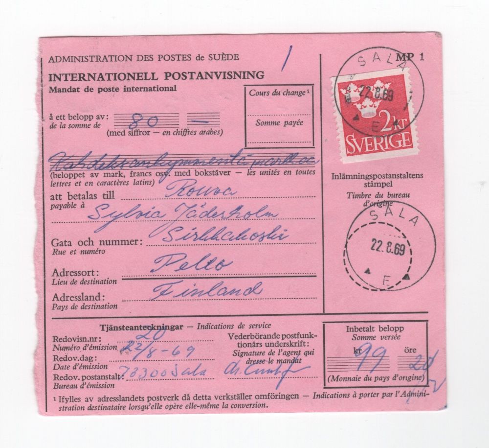 F309 Sala 1969-08-22 Postanvisning U-län |