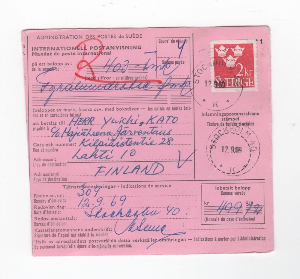 F309 Stockholm 40 1969-09-12 Postanvisning |
