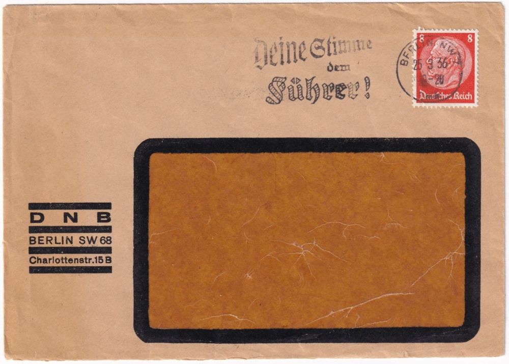Tyska Riket 8 Pfg Hindenburg brev Berlin NW 7 1936.03.25 |