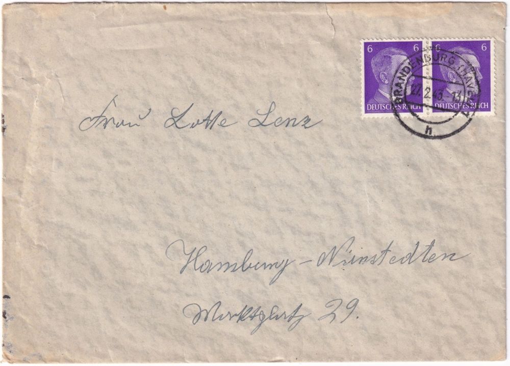 Tyska Riket 6+6 Pfg brev Brandenburg 1943.02.27 |