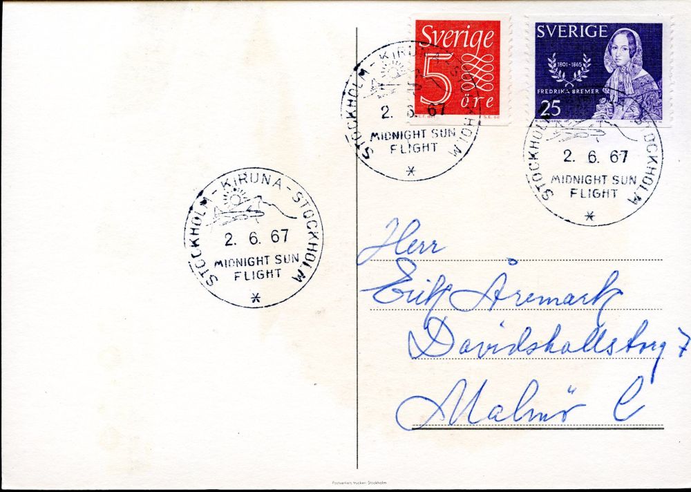 STOCKHOLM-KIRUNA.STOCKHOLM 2.6.1967. Midnight Sun Flight. |