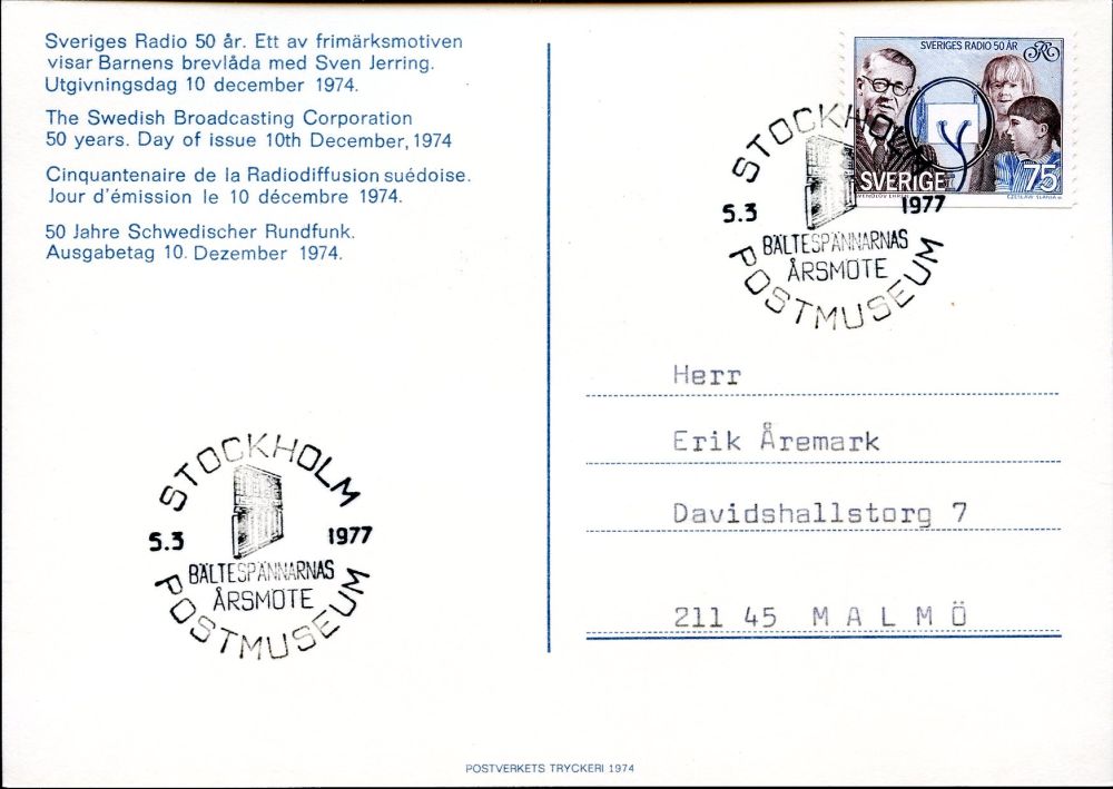 STOCKHOLM 5.3.1977. Bältespännarnas årsmöte. Postmuseum |