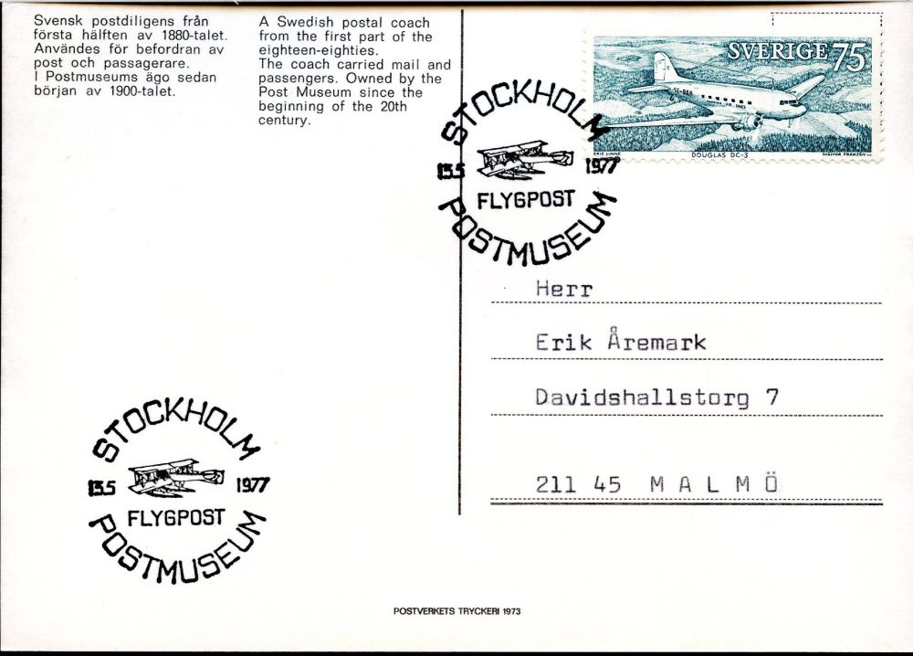 STOCKHOLM 13.5.1077. Flygpost. Postmuseum. |